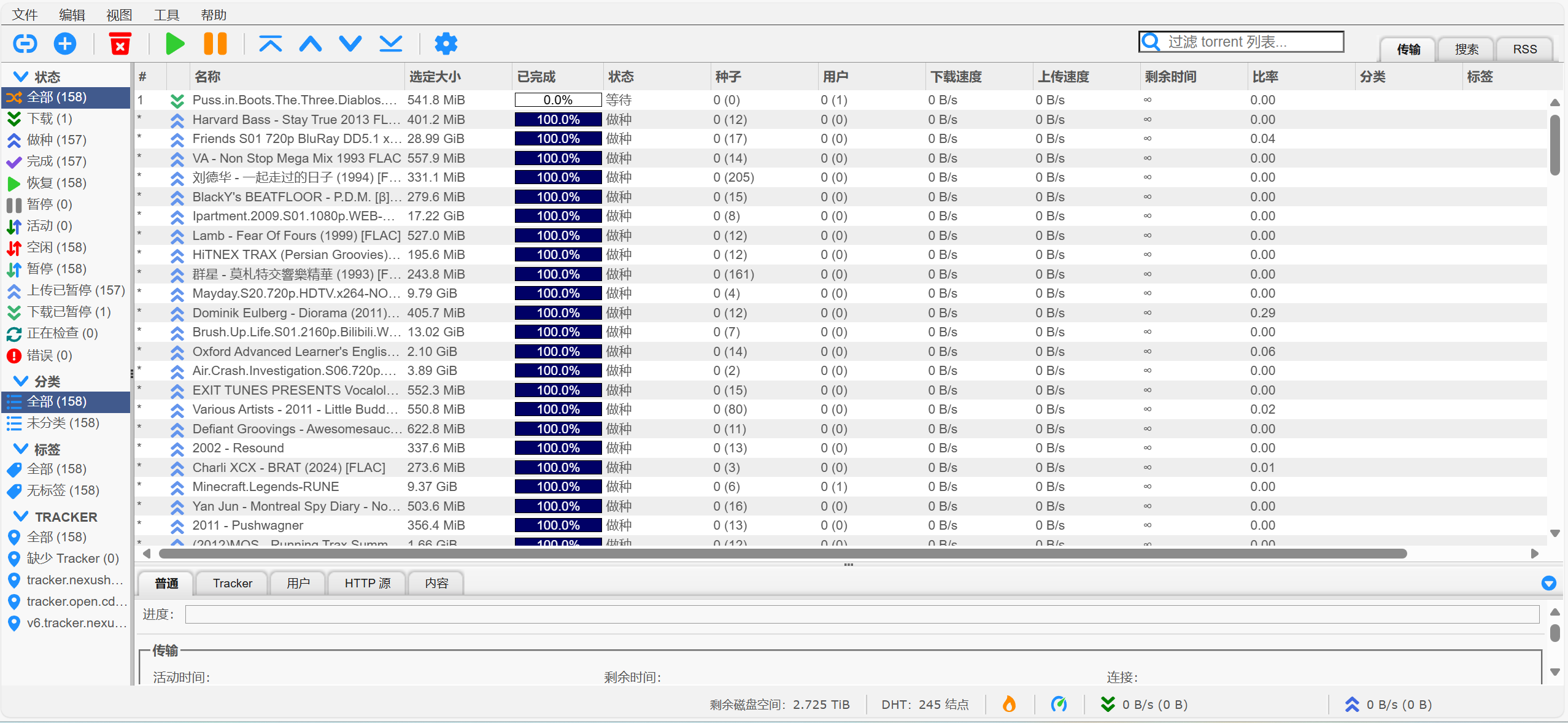 为了解决这个问题,PT(Private Tracker)产生了。PT 对每个下载者都有分享率的要求,你下载完毕某个 Torrent,必须保持一定的做种时间,PT 网站会实时统计你的总下载和总上传比例,也就是你的分享率。如果你的分享率低于网站的要求,可能会被警告,降级或者封号。也因为有了分享率要求,PT 种子一般都会一直有人在做种,出现死种的几率也比较低,下载速度相较 BT 也更快更稳定。如果你想下载更多自己需要的资源,就要持续地为别人做种获取上传流量,提高分享率来获取对应下载的流量。