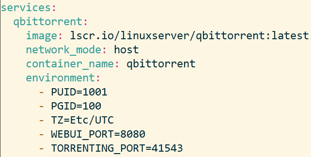我们进入 qBitTorrent 的部署文件夹,编辑docker-compose.yaml文件: