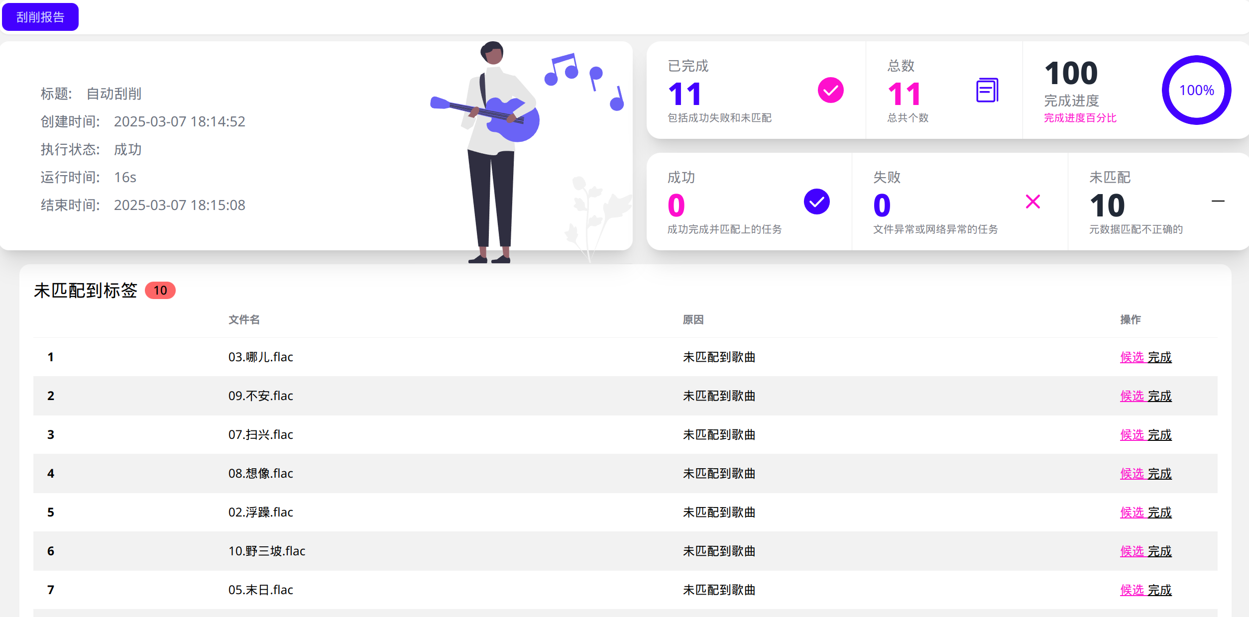 对于未匹配到的歌曲,我们可以点击“候选”来挑选可能匹配的元数据。选择的原则: