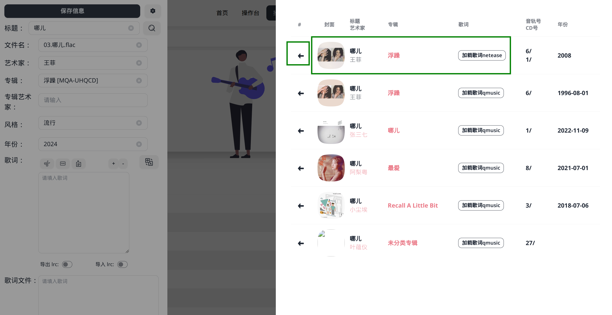 - 歌曲名、艺术家名、专辑名准确