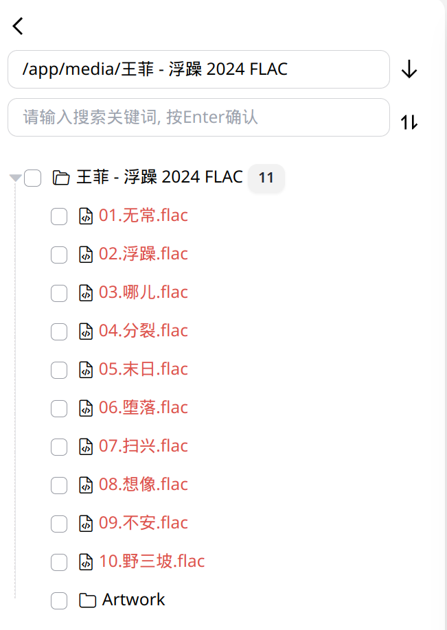 我们还可以在主界面的左侧直接打开某个文件夹。未完全刮削的歌曲会显示红色。