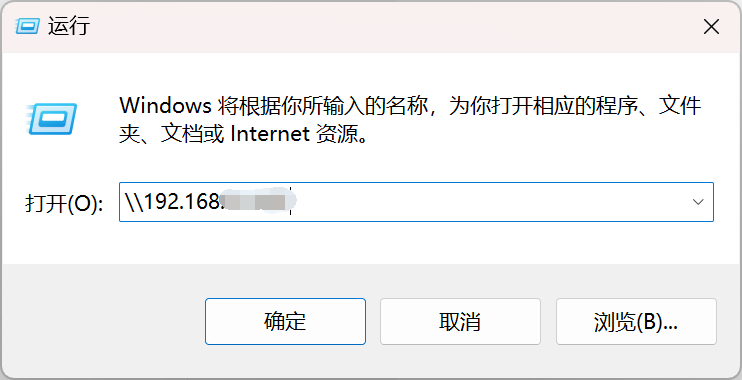 对于 Windows 系统,确认其已连接到 NAS 的局域网中。打开运行,输入\\<NAS IP>,回车: