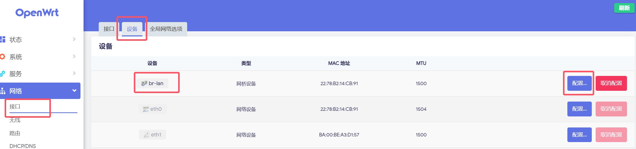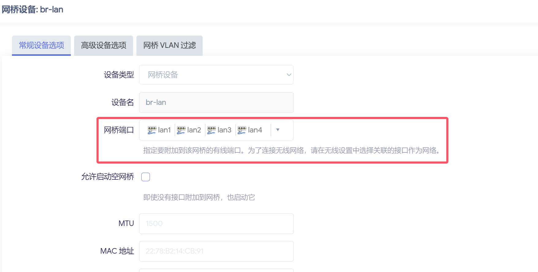 在网络 - 接口 - 设备 - br-lan - 配置处确认网桥端口是否包括了所有有线端口。