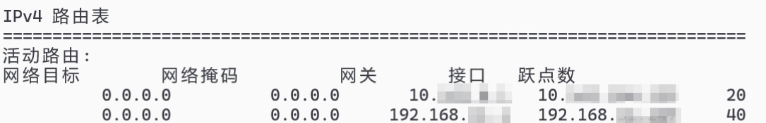 跃点数(Metric)代表跳出路由的成本,通常情况下代表到达目标地址所需要经过的跳跃数量,一个跃点数代表经过一个路由器。跃点数越低,代表路由成本越低,优先级越高。因此,我们可以通过修改网卡的跃点数来更改不同网卡间的优先级。