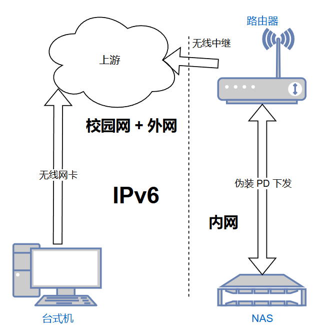 - IPv6 使用中继模式下发,伪装 PD 前缀(校园网特殊操作)