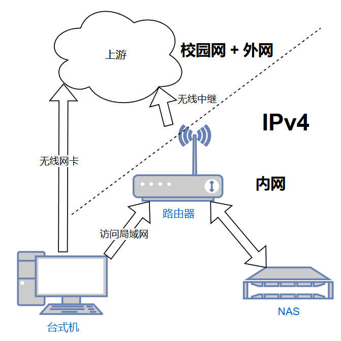 一般电脑都具有有线网卡与无线网卡。为了节省路由器的开销,同时最大限度地利用校园网,我们可以通过有线网卡连接路由器,无线网卡连接校园网。整体上是一种类似于多拨的做法。